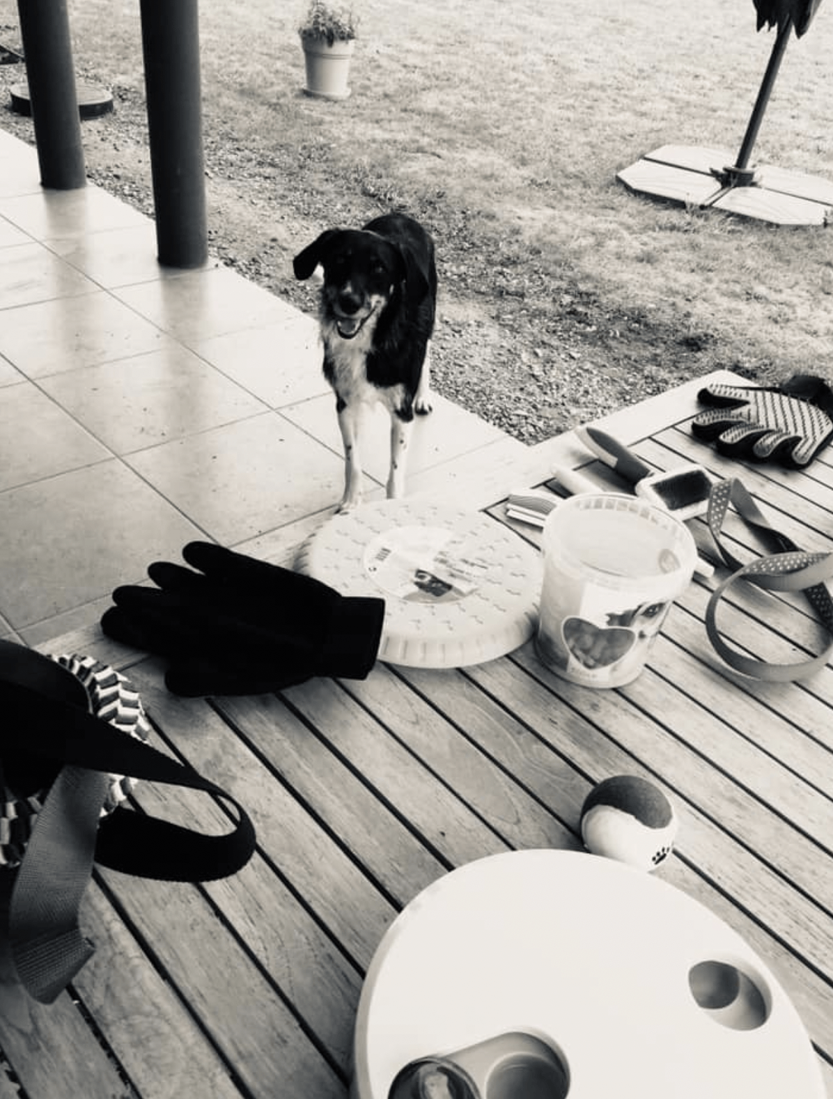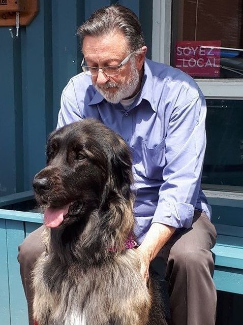 Frédérique Gilbert et ses deux chiens (un bouvier bernois et une border colline/beauceron, tous deux des amours)